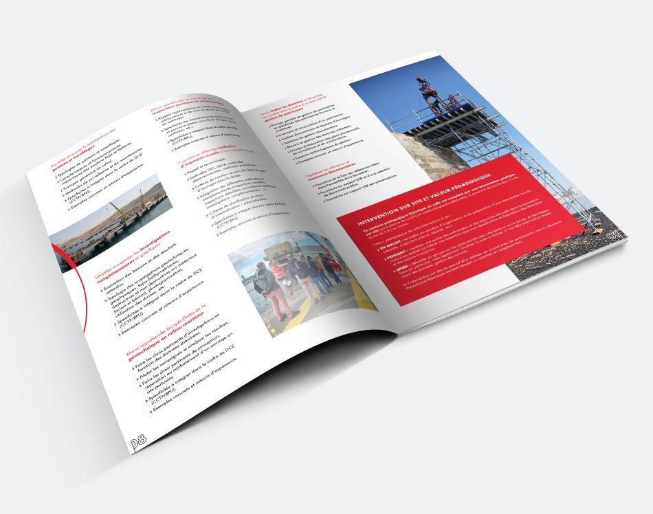 Nous avons opté pour une mise en page sobre, structurée et aérée, permettant de clarifier les informations et de renforcer l’impression de maîtrise qui caractérise l’entreprise. Les visuels, schémas et éléments graphiques utilisés viennent appuyer les messages sans les surcharger.