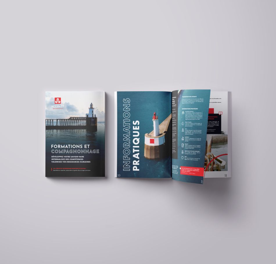 Avec un positionnement solide et une image de fiabilité, Accoast souhaitait des supports de communication capables de présenter clairement son activité, ses formations et ses compétences.Notre travail