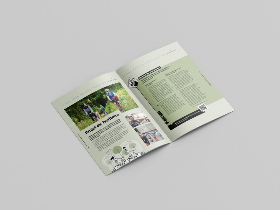 Le territoire du Centre Morbihan, profondément ancré dans la nature, nous a inspiré une palette colorée issue de son environnement : verts doux, tons forestiers, bleus inspirés des rivières. Ces nuances naturelles apportent cohérence, chaleur et ancrage territorial au document.