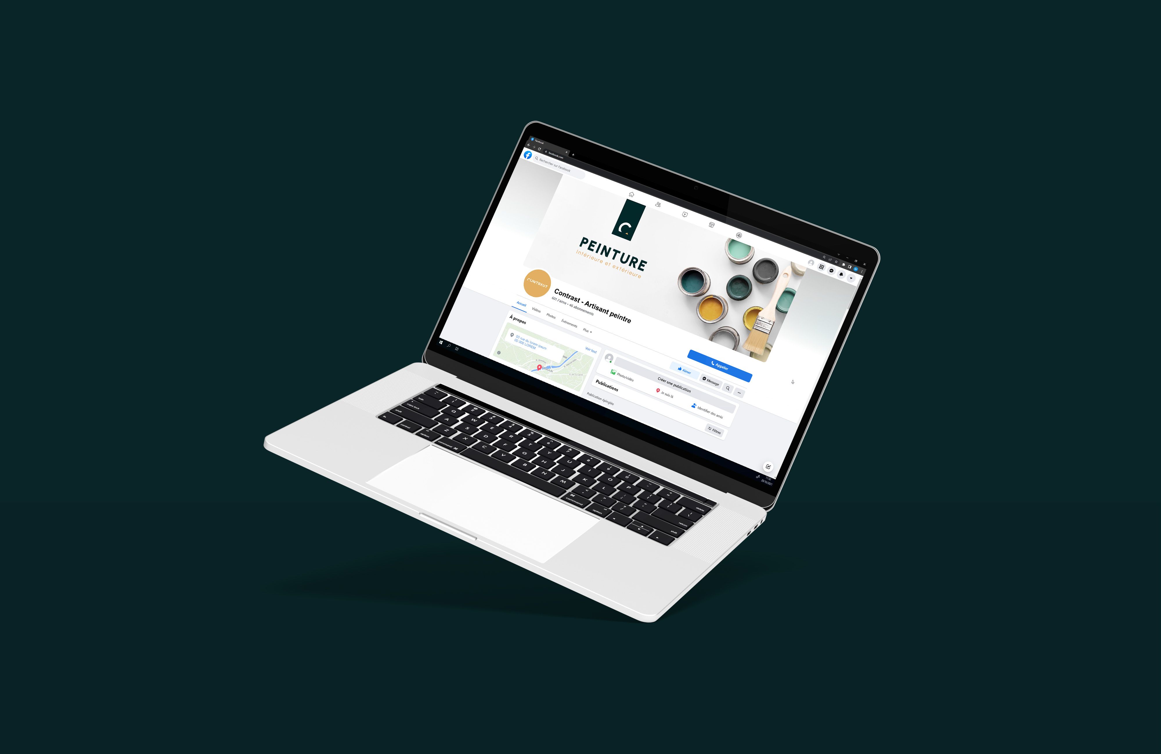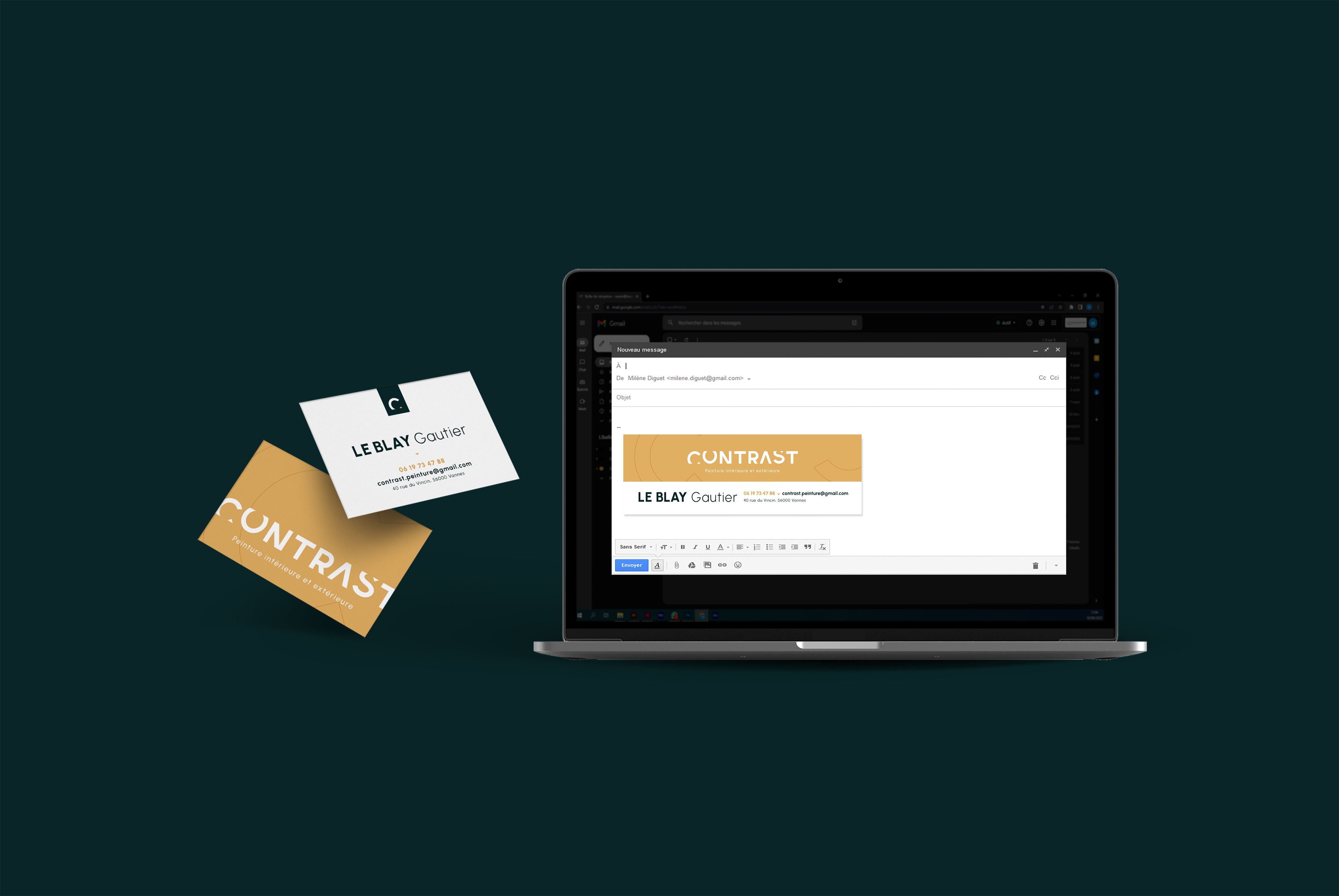Cette identité a ensuite été déclinée sur les cartes de visite, la signature de mail et des gabarits pour les réseaux sociaux, afin d’assurer une cohérence globale sur tous les points de contact.