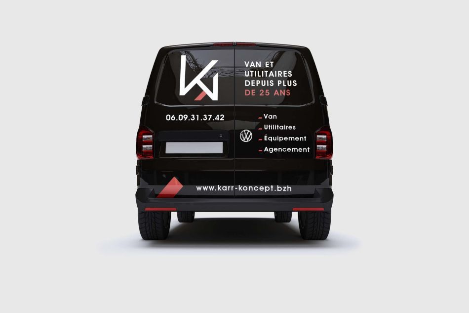 Il trône aujourd’hui sur la façade noire de l’atelier et sur l’utilitaire de la marque — une signature visuelle qui affirme immédiatement le sérieux et l’exigence technique de Karr Koncept.